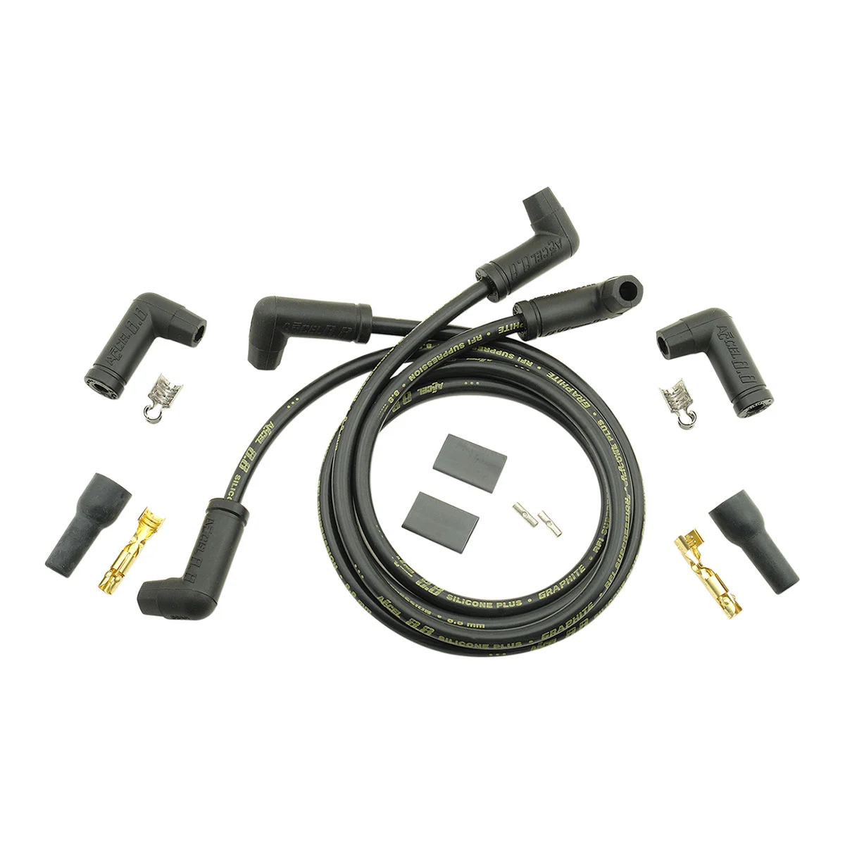 • Spark plug wire kits have suppression core wire and silicone high-dielectric strength spark plug and coil boots with the plug boots already installed