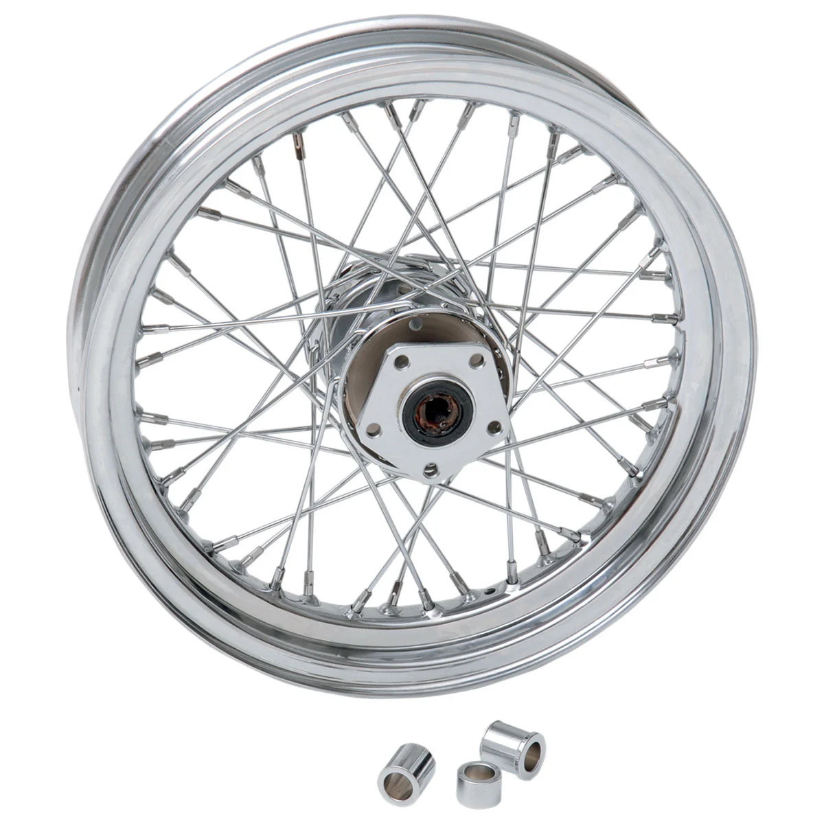 Biker’s Choice offers some of the highest quality replacement spoke wheels out on the market. These spoke wheels are a tube type, 40 spoke, beautifully chromed wheel. It allows you to work with OEM mounting hardware and for use with OEM pullets and sprockets.