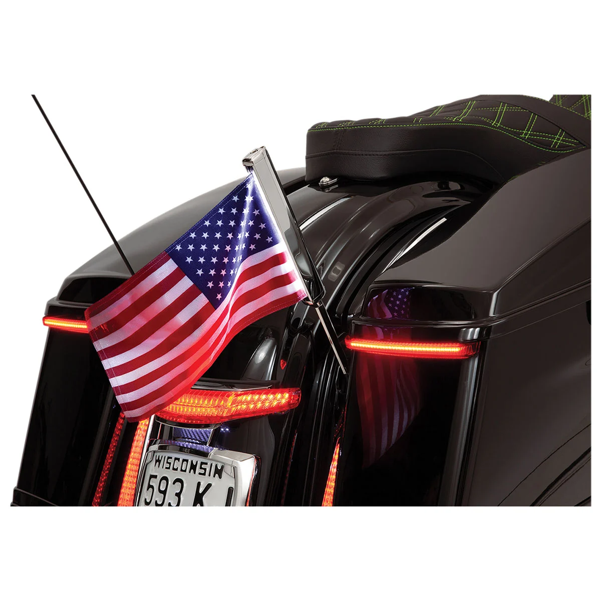 The original stamped stainless steel Antenna Flag Mount fills the hole in the opposite side of your stock antenna for a sleek and immaculate location to mount your LED Lighted Flag Pole and Flag.