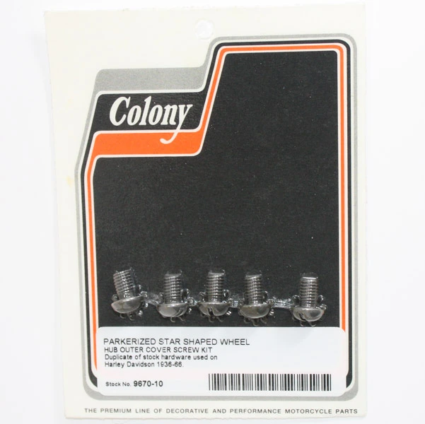 • Hub cover Parkerized screw and lockwasher kit for V-Twin Manufacturing Star Hub Internal Rebuild Kit 201-208 and J&P Cycles Star Hub Internal Rebuild Kit 2000220