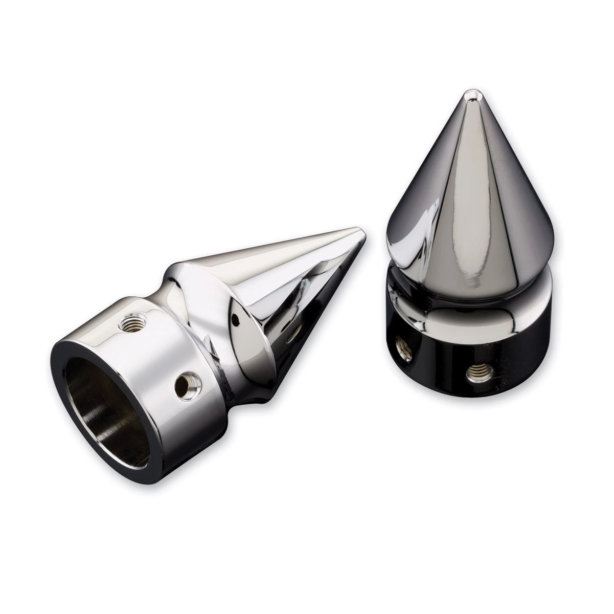 • Chopper style spike axle covers feature a show chromed finish
