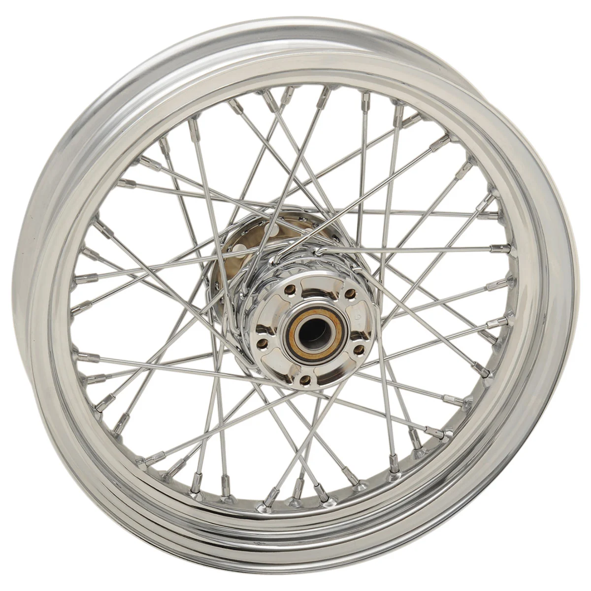 Replace that old, rusty, worn-out wheel with a new chrome wheel. These replacement wheels feature chrome steel hub, chrome rim and chrome spokes. The wheels are fully assembled, trued and come with bearings installed.