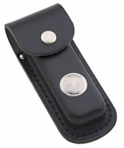 • Leather case is molded to hold most small folding knives