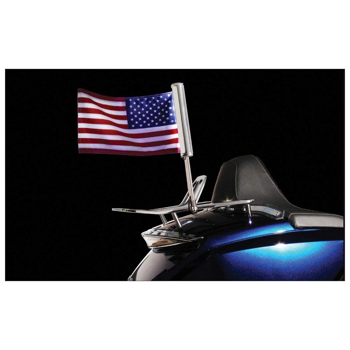 Attach your favorite flag and show your pride with this flat rack flag mount. Fits most popular flat luggage racks with a brilliant chrome finish.