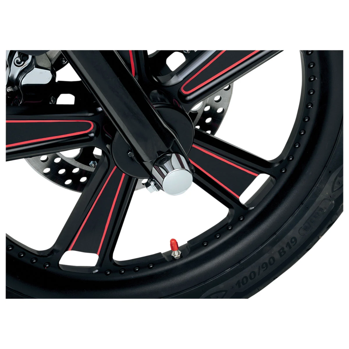 • These caps fit up nicely to the fork sliders and leave no unsighly gaps like other front axle caps