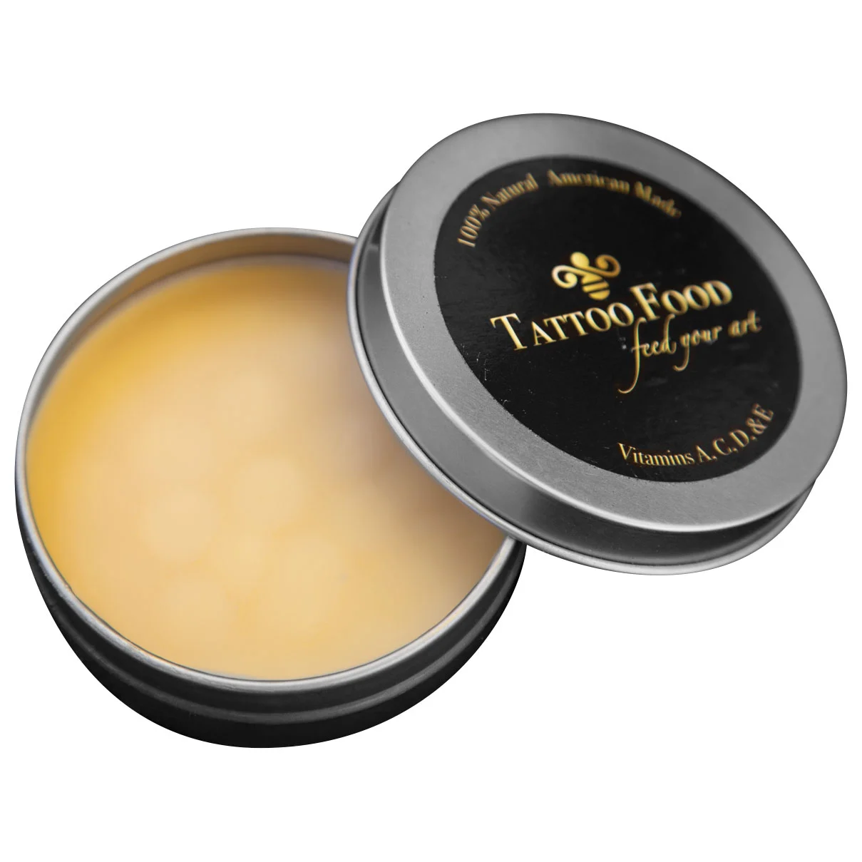 • The main ingredient in our Tattoo Food is raw, natural, beeswax which soothes and hydrates your skin