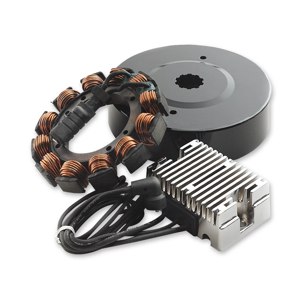 • The kit includes a high performance, thick-gauge stator winding with three-rib plug and durable solid-state chrome voltage regulator