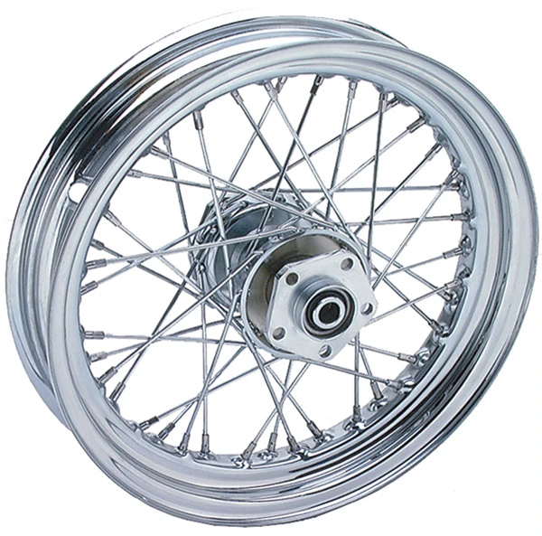 • Dual flange chrome rear wheel assembly features chrome rim and hub laced with chrome spokes