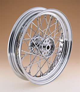• Polished stainless steel spokes laced to chrome hubs & rims