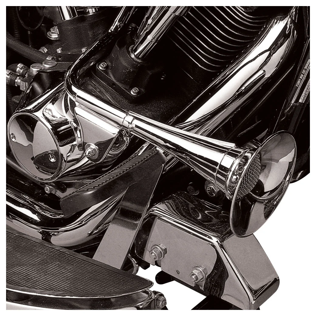 • Unlike any of the other kits on the market, this chrome trumpet horn kit was specifically designed to meet the demand for a horn that fits all 1984-99 Softails