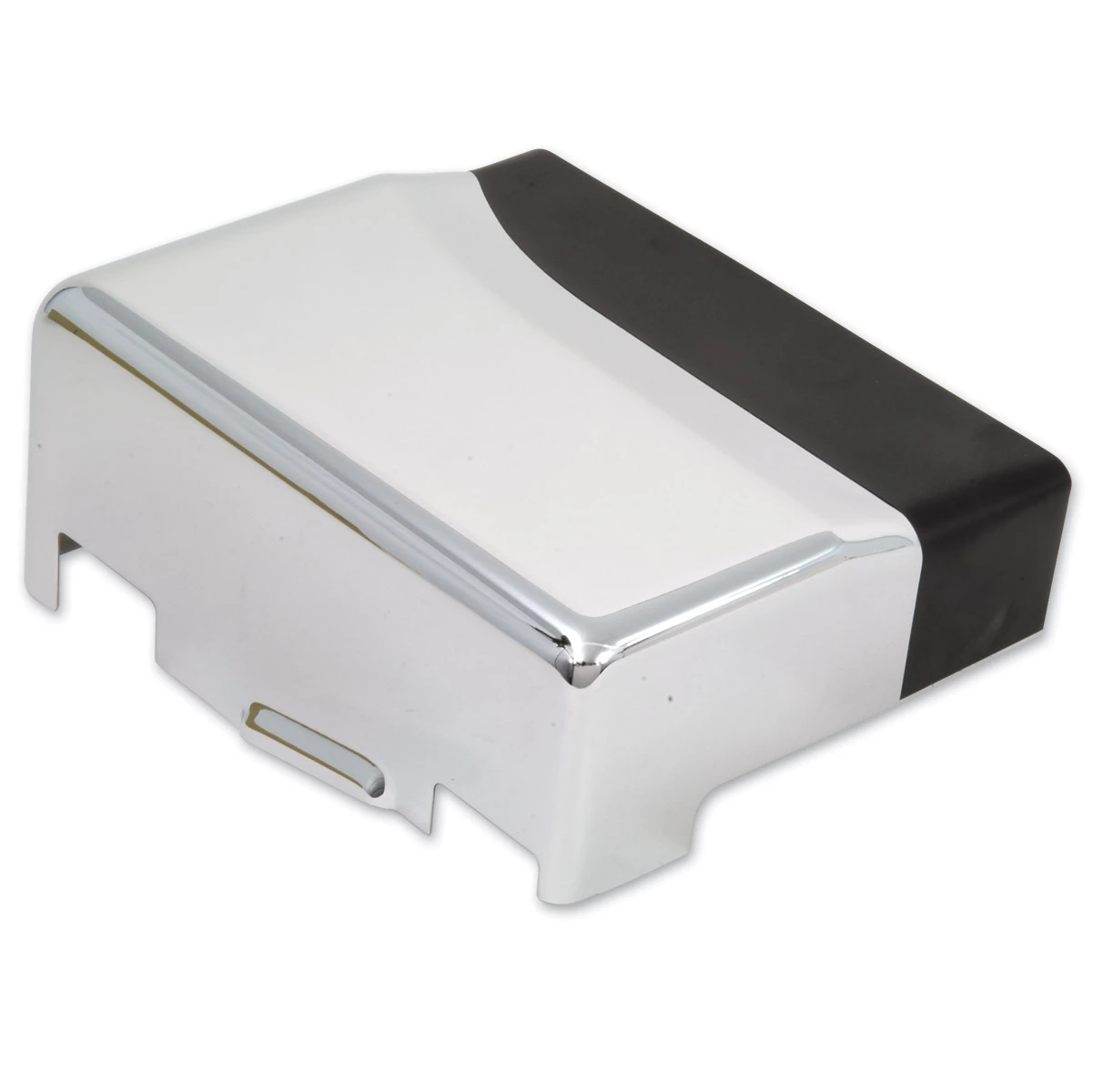 • This chrome, stamped steel one-piece design covers the top and side for a clean custom look