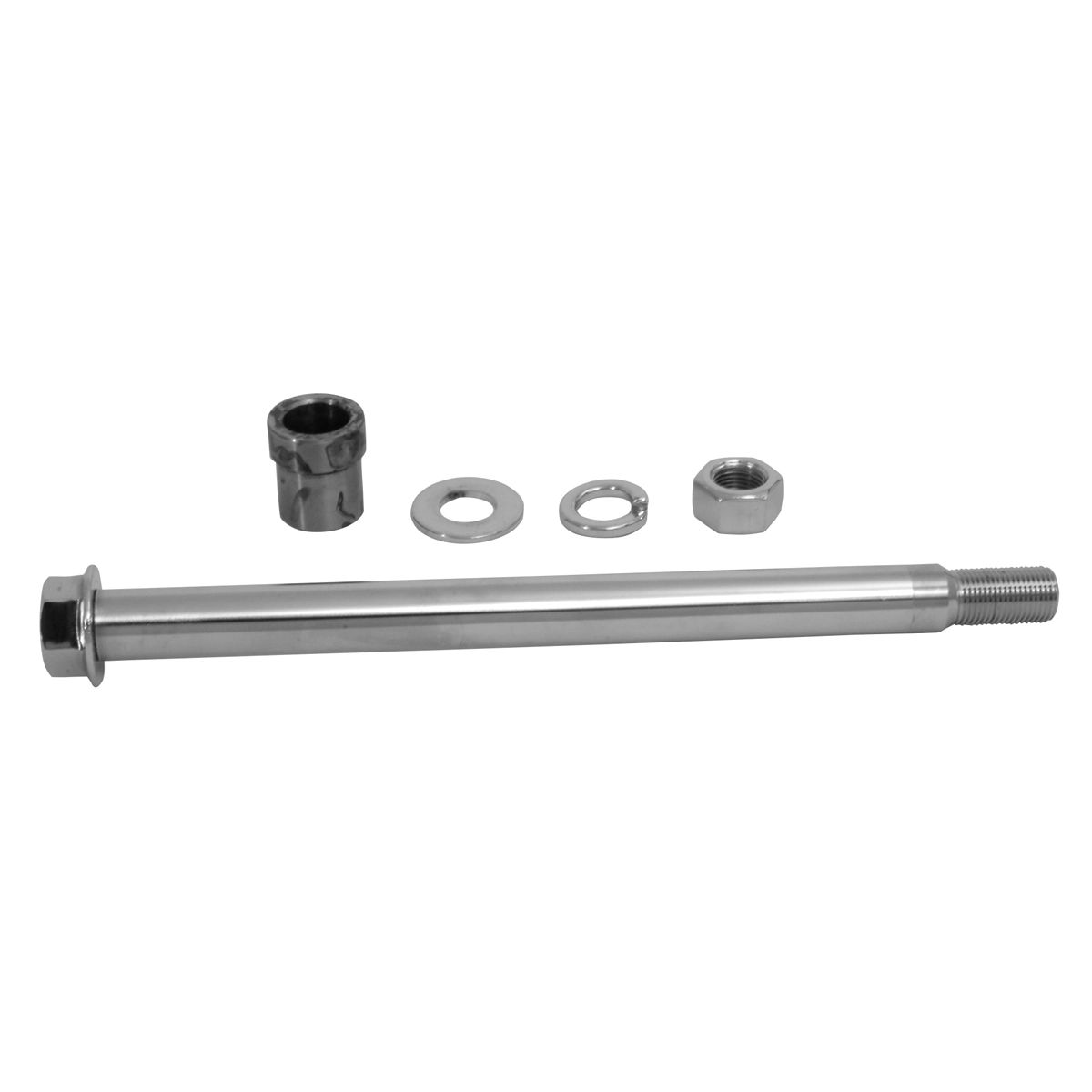 • Kit includes a chrome plated axle, chrome nut, chrome flat washer and chrome lock washer